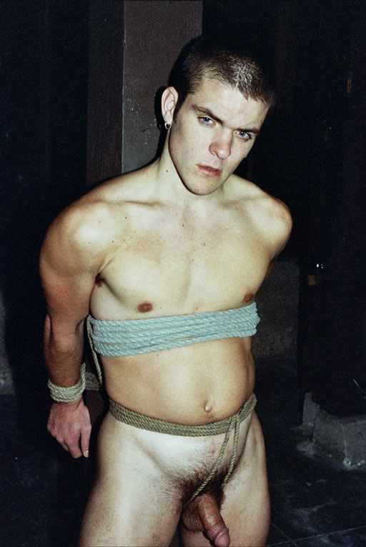 Newcomer Dylan is another young beauty who crosses paths with Master S. B. David on a particularly demanding day. Tight ropes, cruel bit gags, and tit clips all have the same effect on Dylan: they all give him a raging hard-on. In heavy irons, his mouth taped shut, his head is shaved smooth as a billiard ball. Then the slave is spread-eagled and has his crotch and pits shaved clean. The result is a very turned-on Master and slave fuck fest. This Tom Ropes McGurk classic is available in its entirety on “Classics Vol. 28”.